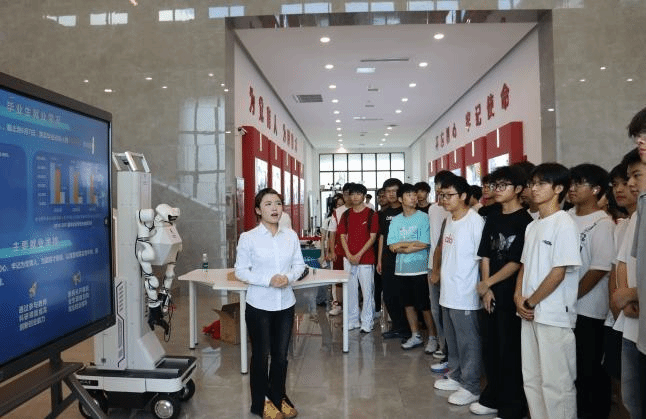 活动中,讲解员结合习近平总书记关于“青年要从实际出发选择职业”的重要指示精神,引导同学们树立“平实之心”,客观看待个人条件与社会需求,科学规划职业发展方向;在智能分选机器人、智慧农业环境监测装置等特色展区,重现了总书记视察时的生动场景,使思政教育更加具象化、可视化;就业创业指导服务资料展台全面呈现了我校“大一职业生涯规划启蒙—大二专业能力提升—大三创新实践培育—大四就业精准帮扶”的全周期指导体系,为学生成长成才提供有力支撑。