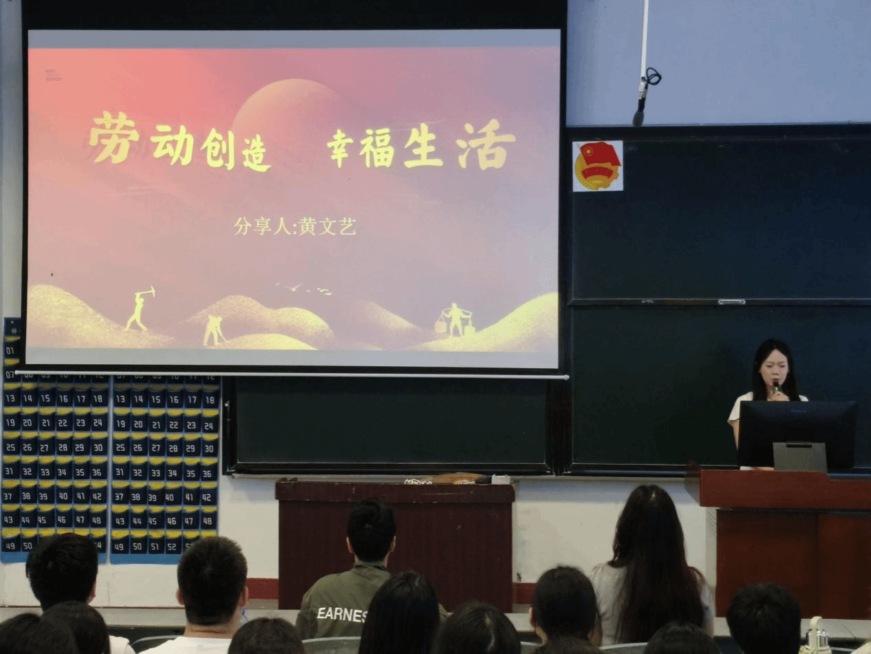 法学与公共管理学院黄文艺、机械与电气工程学院黄浩粟、农林与食品工程学部胡景瑜、体育与大健康学院郑桂霞等十名同学分别以对“劳动创造幸福生活”的认识和大学生如何践行新时代劳动者两个主题进行分享。