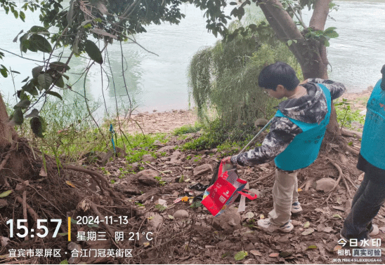 为了改善社区河流两岸的生态环境,提高全社会对保护河流生态的关注,11月13日下午,质量管理与检验检测学部青年志愿者协会在宜宾市冠英社区开展了以“守护一江清水,留住两岸绿意”为主题的环保清洁和宣传实践志愿服务活动。