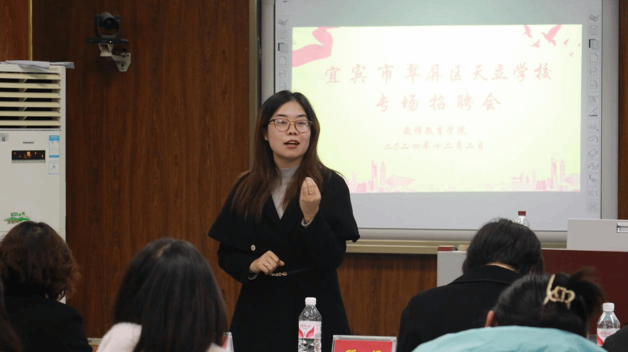 以习近平新时代中国特色社会主义思想为指导,深入贯彻党的二十届三中全会精神和全国教育大会精神,落实落细党中央、国务院关于高校毕业生就业工作的各项决策部署,教师教育学院于12月2日开展了宜宾市天立集团专场招聘会。宜宾分校校长邓娟,副校长刘玉,校长助理罗明媚,教师发展处副主任史玉姣,课程质量处副主任陈巧,语文教研组组长梁超兰,我院副处级组织员王蓉等教师及部分低年级学生参会。