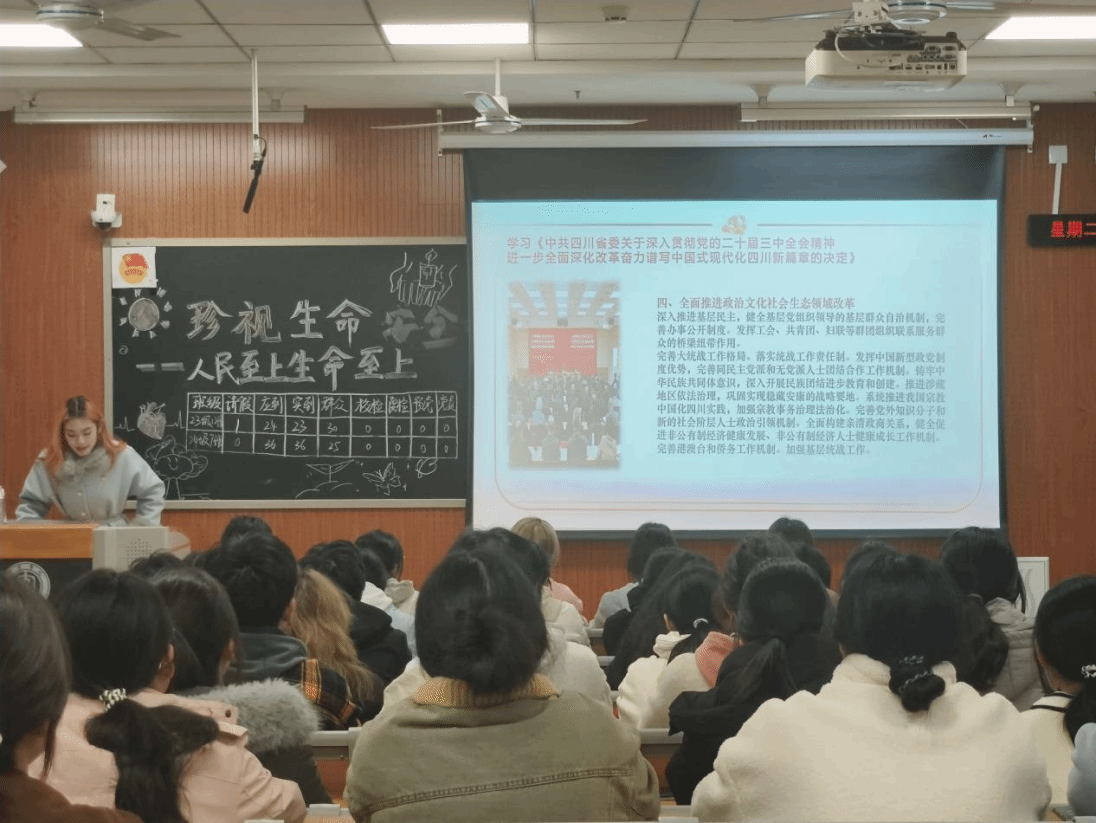 为了提高同学们的安全意识,培养应对突发事件的冷静态度,经济与工商管理学院于2024年11月26日在宜宾学院临港校区一期教室开展了“珍视生命安全”主题团课。