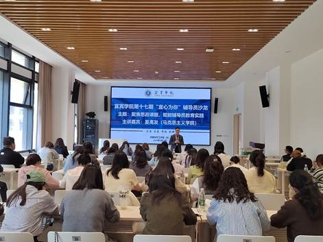 为深入贯彻新时代高校思想政治教育工作要求,进一步提升辅导员队伍专业化水平,3月27日,宜宾学院成功举办第十七期“宜心为你”辅导员沙龙,邀请马克思主义学院党委副书记、副院长夏高发担任主讲,党委学生工作部(处)副处长王珺和全校专职辅导员、学生教育科全体老师参加本次沙龙。