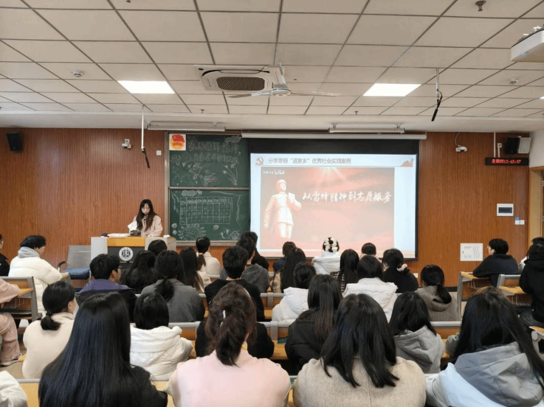 团课在嘹亮的中国共青团团歌中拉开序幕,全体团员佩戴团徽,肃立齐唱,表达对共青团的热爱与敬意。随后,各班团支书通过纪录片《雷锋的故事》,生动展现了雷锋同志平凡而伟大的一生。从苦难童年到爱岗敬业,从无私奉献到助人为乐,一个个真实感人的故事深深触动了在场团员。观影结束后,现场响起热烈掌声,许多同学表示深受感动。