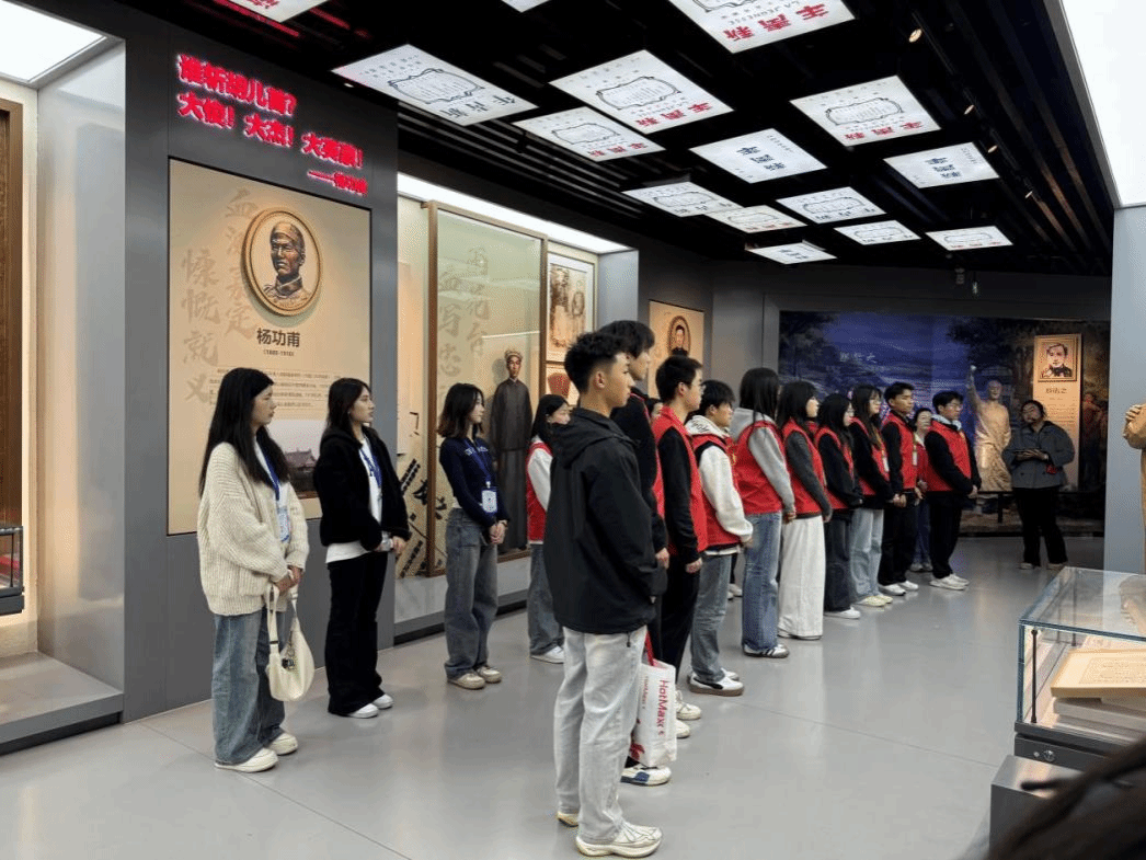 在讲解员的带领下,志愿者们参观了革命烈士纪念馆。馆内陈列的珍贵历史图片与文物,生动再现了赵一曼、郑佑之等宜宾本土英烈的感人事迹。当听到李硕勋烈士"舍生取义"的革命故事时,不少同学眼含热泪,深刻感悟到先烈们"为有牺牲多壮志,敢教日月换新天"的赤诚初心。通过沉浸式的学习,同学们对中国共产党人的精神谱系有了更深的理解。