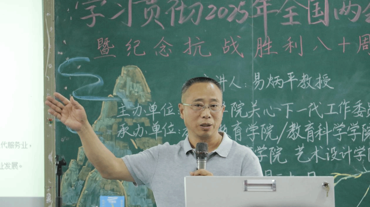 员会联合教师教育学院、音乐与表演艺术学院、艺术设计学院于博雅楼B201举办“学习贯彻2025年全国两会精神暨纪念抗战胜利八十周年”专题讲座,本次讲座特邀学校关心下一代工作委员会易炳平教授担任主讲嘉宾。宜宾学院关心下一代工作委员会专职委员赵政一、教师教育学院专职辅导员杨云云及三个学院100余名学生到场聆听。