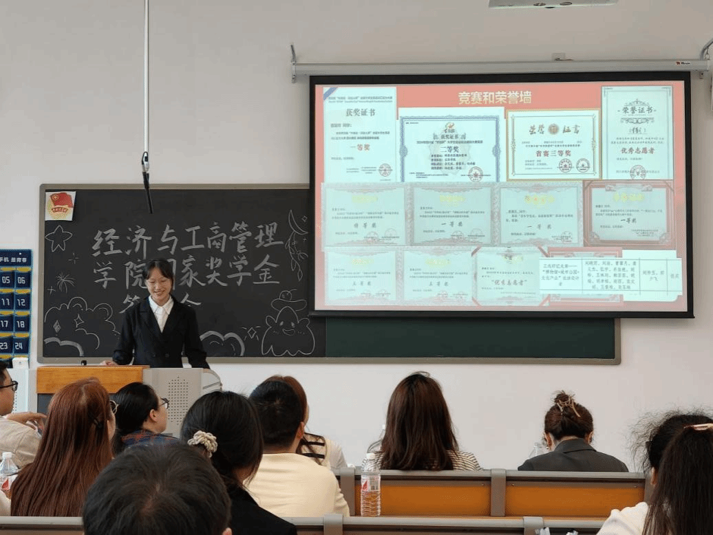 为了树立优秀学生榜样、鼓励同学们积极进取,经济与工商管理学院于10月9日下午在临港校区7D103教室举行了国家奖学金评审答辩会。经济与工商管理学院学生办公室主任巫晓娟、经管学院专兼职辅导员童娟、周芹伊、文朝虹、龚琬琳、彭丽潞、李庆、李亚孺、廖鹿缘老师出席答辩会并担任评委。