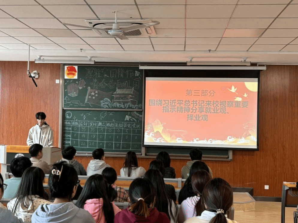 随后,团会进入到了关于习近平总书记来校视察重要指示精神的学习交流部分。在这个环节中,同学们积极分享了自己的想法,结合自身专业学习和个人未来规划,表达了对总书记讲话内容的理解。有同学表示,总书记的重要指示使他们更加清晰地认识到自己未来的职业道路应当如何选择,即需要将个人成长与国家发展紧密结合,在追求个人梦想的同时不忘回馈社会。还有同学强调,在做职业选择时应兼顾到国家利益和社会需求,展现出新时代青年应有的责任担当。此环节充分反映了同学们对总书记讲话精髓的领悟及其积极实践的态度,展现了当代大学生心系祖国、勇于追梦的精神面貌。