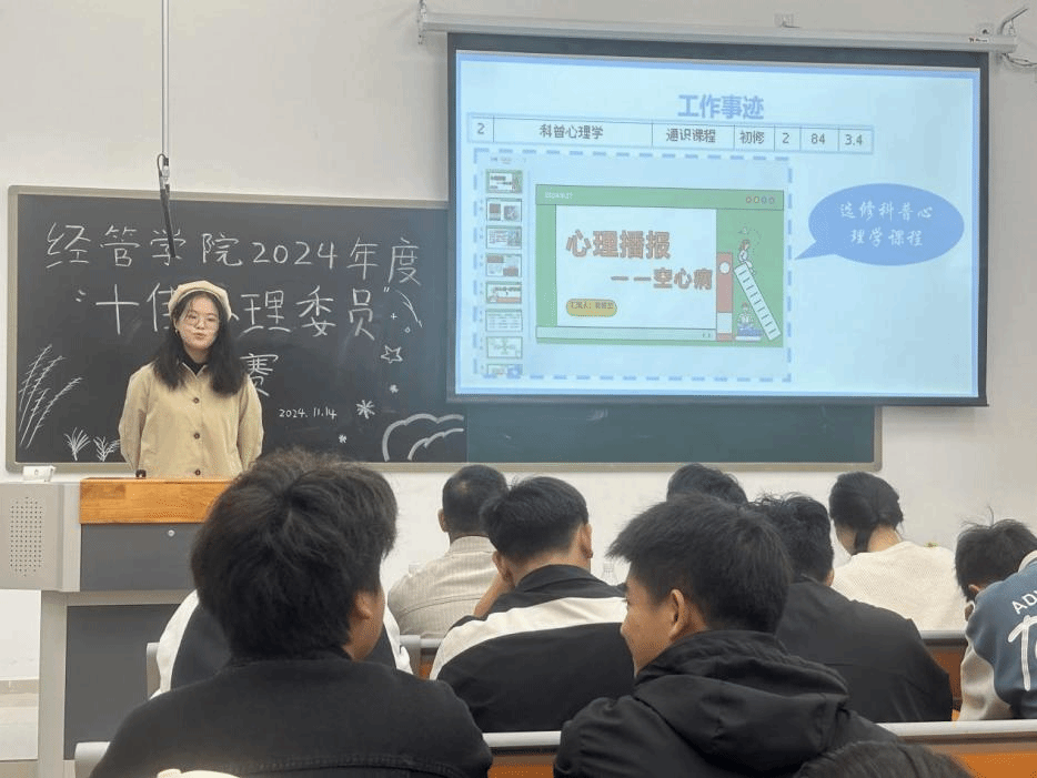 近年来,我国政府高度重视心理健康工作,将心理健康纳入国家战略。为积极响应国家号召,宜宾学院经济与工商管理学院于11月14日在临港校区7C106教室成功举办了“十佳心理委员”决赛,旨在提高大学生们的心理健康意识,同时为心理委员营造良好的工作氛围。