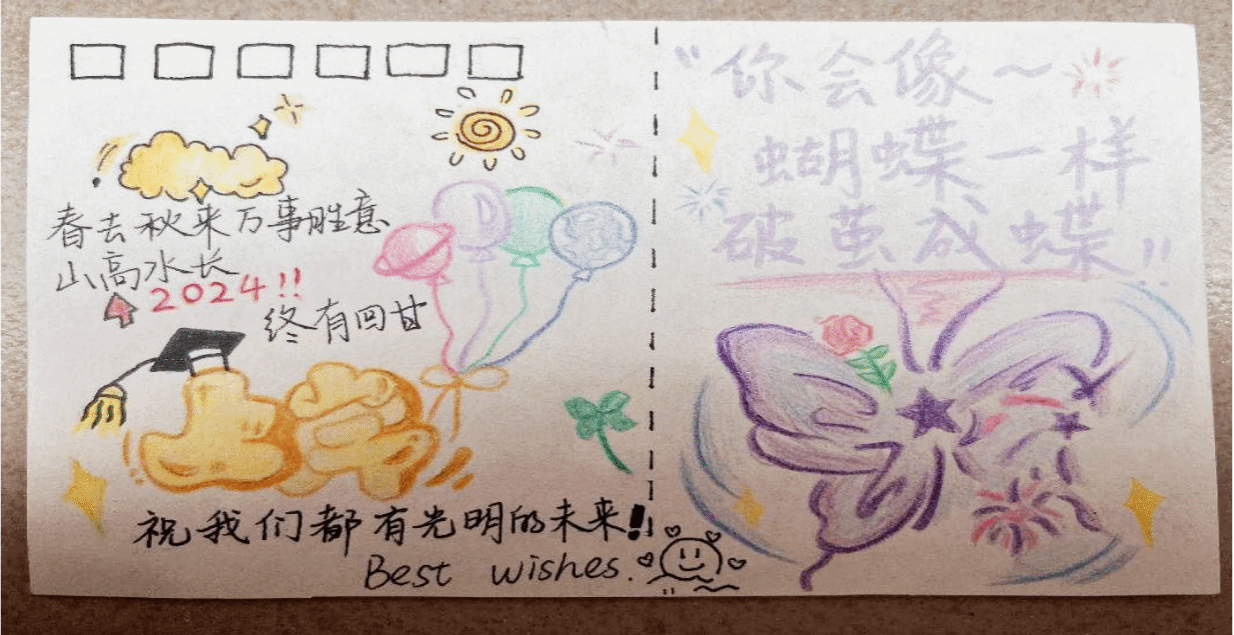 本次活动,不仅为考研同学筑牢了心理防线,使其在逐梦途中更加自信从容,亦增进了同学间的情谊,营造了良好的校园文化氛围。明信片上的祝福,如同点点繁星,照亮了考研人的漫漫征途,预祝考研的同学们以笔为剑,书就华章,向着梦想奋勇迈进。