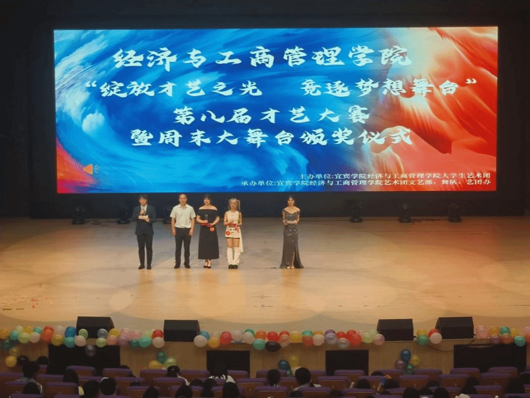 2025 年 4 月 19 日,宜宾学院经济与工商管理学院为丰富校园文化生活、营造积极向上的校园氛围、展现学生青春风采,举办了以 “绽放才艺之光,竞逐梦想舞台”为主题的第八届才艺大赛决赛。本次大赛旨在为学生搭建展示才华的平台,挖掘艺术潜能,增进对多元文化的理解与尊重。经管团委老师亲临现场,与观众共同见证了这场精彩绝伦的艺术盛宴。