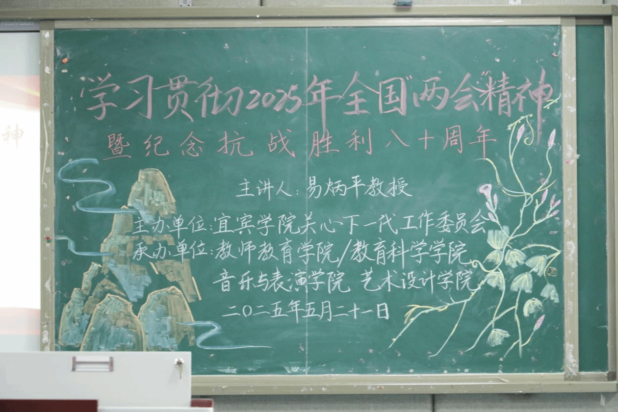 员会联合教师教育学院、音乐与表演艺术学院、艺术设计学院于博雅楼B201举办“学习贯彻2025年全国两会精神暨纪念抗战胜利八十周年”专题讲座,本次讲座特邀学校关心下一代工作委员会易炳平教授担任主讲嘉宾。宜宾学院关心下一代工作委员会专职委员赵政一、教师教育学院专职辅导员杨云云及三个学院100余名学生到场聆听。