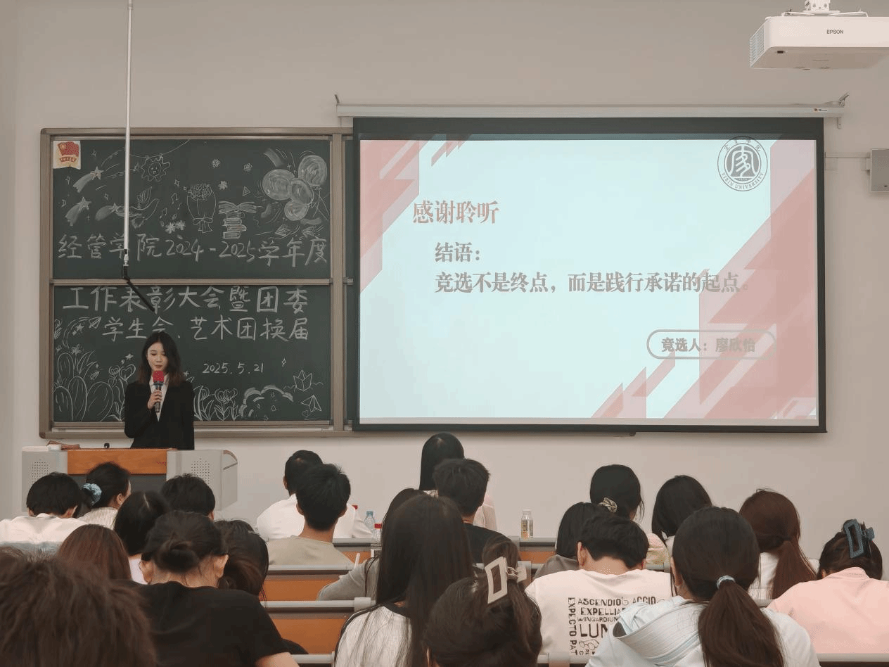 大会伊始,经管团委书记巫晓娟全面总结了上一学年学生工作的亮点与成效,并宣读表彰名单。本次表彰涵盖德智体美劳及创新实践等多个维度,旨在嘉奖在志愿服务、学术竞赛、文体活动中表现卓越的个人与团体。她强调:“受表彰的同学用实际行动诠释了‘求实、创新’的精神,是全体同学学习的标杆。”获奖代表表示,将继续以高标准要求自己,践行青年担当。