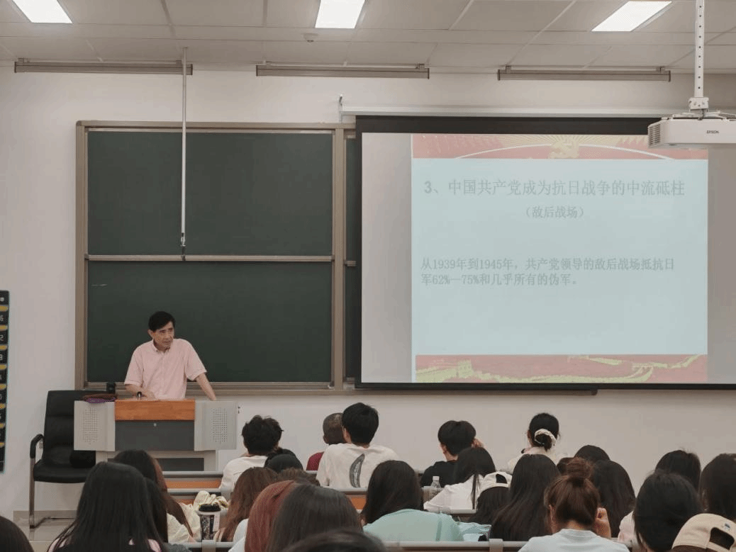5月22日中午,宜宾学院关心下一代工作委员会在临港二期 7A101教室举办“铭记抗战历史,培育时代新人”专题讲座,常智敏教授担任主讲,学校关工委曹衍江委员和经济与工商管理学院150名余名师生现场聆听。
