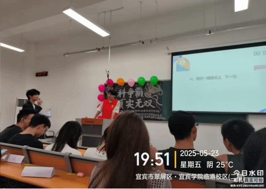 本次比赛共有10组参赛选手,采用两轮赛制展开激烈角逐。第一轮为选拔赛,各组选手通过随机抽取题库题目进行作答,最终得分最高的队伍晋级为擂主。比赛中,选手们全神贯注、争分夺秒,以精准的判断和快速的反应力争在限定时间内答对更多题目。第二轮为攻擂赛,其余各组依次向擂主发起挑战,最终成功守擂的队伍将荣膺冠军。经过多轮紧张激烈的较量,2023级3班吴家源和刘毅小组凭借出色的表现脱颖而出,成功摘得桂冠。这场比赛不仅是一场知识的较量,更展现了当代青年学子昂扬向上的精神风貌,他们用智慧与汗水诠释了永不言弃的拼搏精神和对胜利的执着追求。
