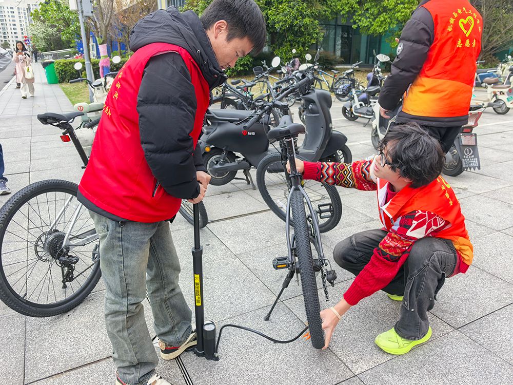在活动核心的便民服务区,机械维修和超声波清洗两支专业志愿小队,把“维修间”和“清洗站”搬到学生社区。机械维修小队免费为学校师生提供非机动车充气、链条上油、螺丝紧固、简易故障排查等免费快修服务,同时现场普及日常安全用车小知识,解决师生出行的实际问题;超声波清洗小队严格按照操作规范,为师生免费清洗眼镜、首饰、手表链等小件物品,用细致服务化解师生生活中的“小烦恼”,切实提升师生在学生社区的获得感、幸福感和归属感。