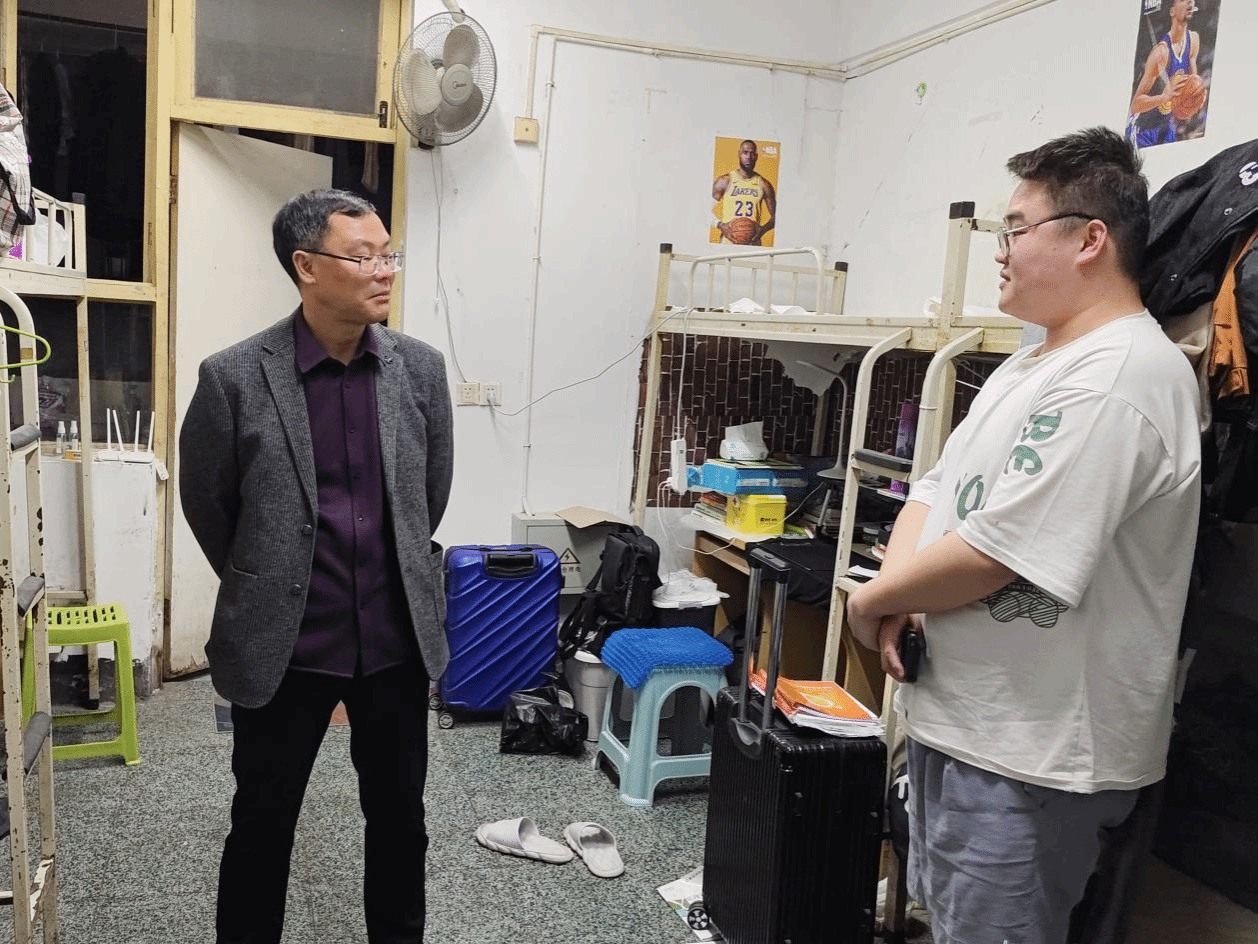 在毕业生寝室,老师们还细心询问了学生们的就业情况,引导同学们要看清当下的就业形势,积极参加各类就业招聘会,主动谋就业。