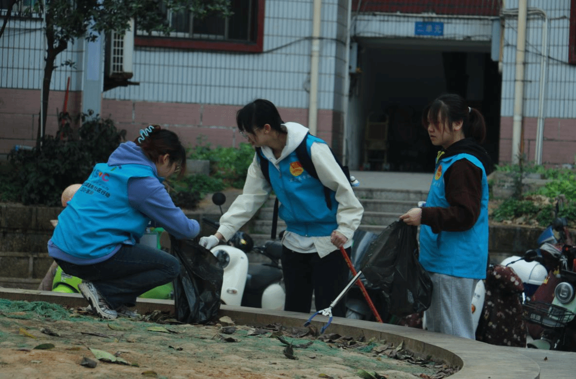 活动当日,志愿者们手持垃圾袋、抹布、垃圾夹、扫把等工具,分组对社区内的绿地、停车场等区域进行了彻底的清扫。志愿者们充分发挥不怕脏、不怕累的精神,将乱丢弃的纸屑、烟头等垃圾统一收集整理,捡拾白色垃圾及绿地内的枯草干枝,清理堆物堆料,整理自行车等,整个活动过程有条不紊。在劳动的过程中,志愿者们还积极与社区居民沟通交流,宣传环保知识,引导居民养成良好的卫生习惯。