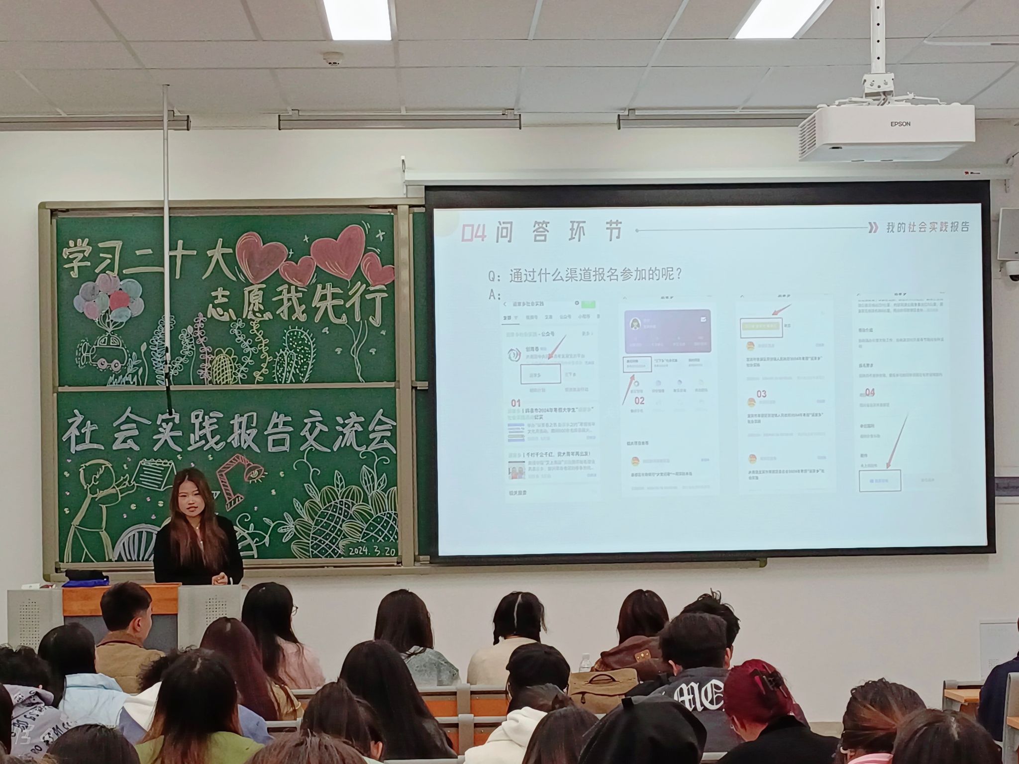 本次交流会,来自不同年级同学分享了自己做志愿者的经历,以及从中获得的经验感想。其中,2021级2班的李欣同学从实践目的、实践内容、经验与感悟和问答环节这四个方面,推心置腹地告诉我们“做事首先要学做人,要明白做人的道理”;2022级4班的陈倩萍同学通过筹备家乡春晚,在与其他志愿者和社会各界人士的交流中,体会到了金钱无法买来的满足与快乐;2021级4班的李晓璐同学深入事业单位的一线岗位,在创新理论宣传等方面积极发挥作用,练就个人的社会适应能力。每位同学的分享都发自肺腑,让台下的同学们受益匪浅,感触颇深。参与分享会的同学热情高涨,纷纷发表自己的感悟,表示自己要好好珍惜社会实践机会,要认真、努力地做好自己的工作,为社会发光发热。