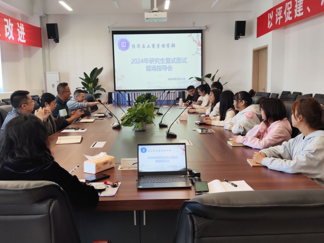 为进一步对2024届毕业生考研复试进行帮助和指导,经济与工商管理学部于3月25日开展了研究生复试面试指导会。经管学部副部长孟宝、党总支副书记黄河、白如彬、李自荣、周敏、毕业班班主任等老师参会。
