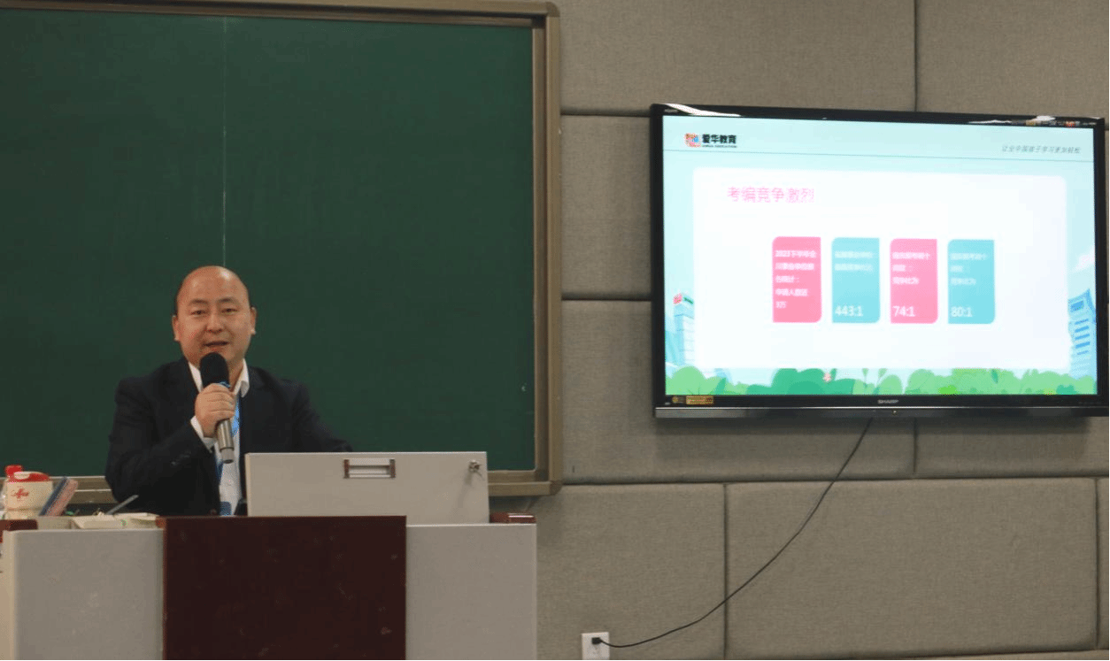 招聘会现场气氛热烈,宣讲环节中,罗焕勇一行人就目前市场需求进行分析与预测,让学生们充分了解就业局势。随后,罗焕勇向同学们介绍了公司的经营模式、福利待遇和规模、企业文化等基本情况,分析了当今考研与就业的大趋势,并与同学们积极互动,鼓励大家进行积极沟通问答与投递简历。