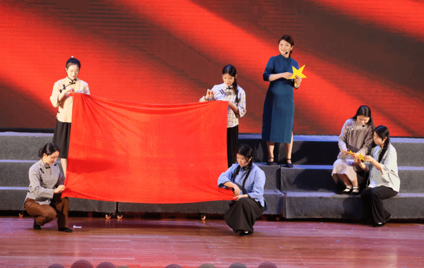 晚会在一场精彩的走秀中拉开序幕,神形兼备的当代舞蹈《罗昌秀之迫》和扣人心弦的情景剧《江姐》,通过两种不同形式的表演弘扬红色精神,让在场的每一位观众深刻感受到了革命先烈的英勇事迹和崇高品质。藏族舞蹈《走在幸福路上》豪迈奔放,同学们的表演充满了力量和激情,极富感染力。彝族舞蹈《花腰新娘》则娴雅优美,将彝族文化的韵味展现得淋漓尽致,令人陶醉。此外,还有古筝表演《战台风》和诗文朗诵《鹿鸣》,展现了中华传统乐器和文化的独特魅力,使观众在音乐和诗文中感受中华文化的博大精深。