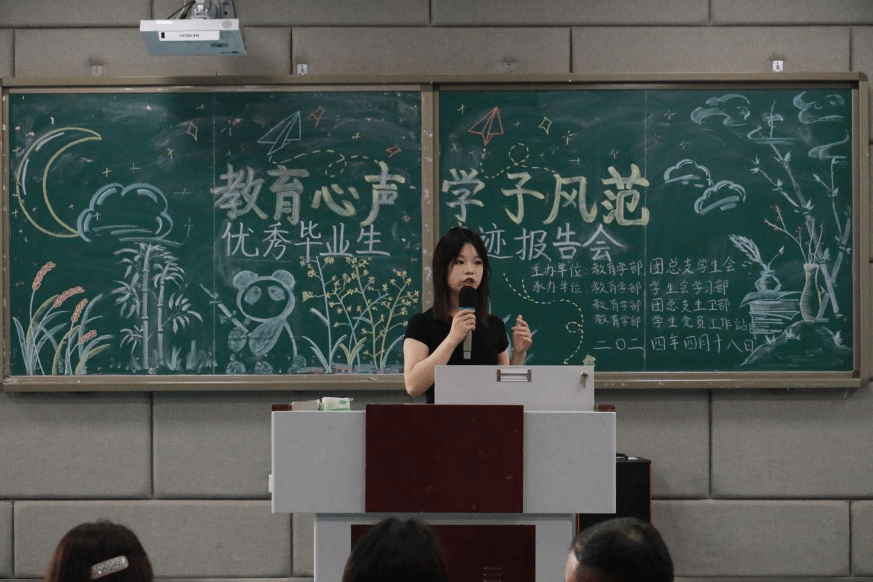 为了引导学部学生明确学习方向与目标,培养以学铸魂、增智、正风、促干的学风,教育学部于4月18日在博雅楼B201举办了“教育心声·学子风范”优秀毕业生事迹报告会。此次活动得到了党总支副书记刘薪(负责工作)、李伟以及辅导员杨云云、王勤、李璐的出席与支持,旨在让学子们从优秀毕业生的经验中汲取智慧,共同激励成长。