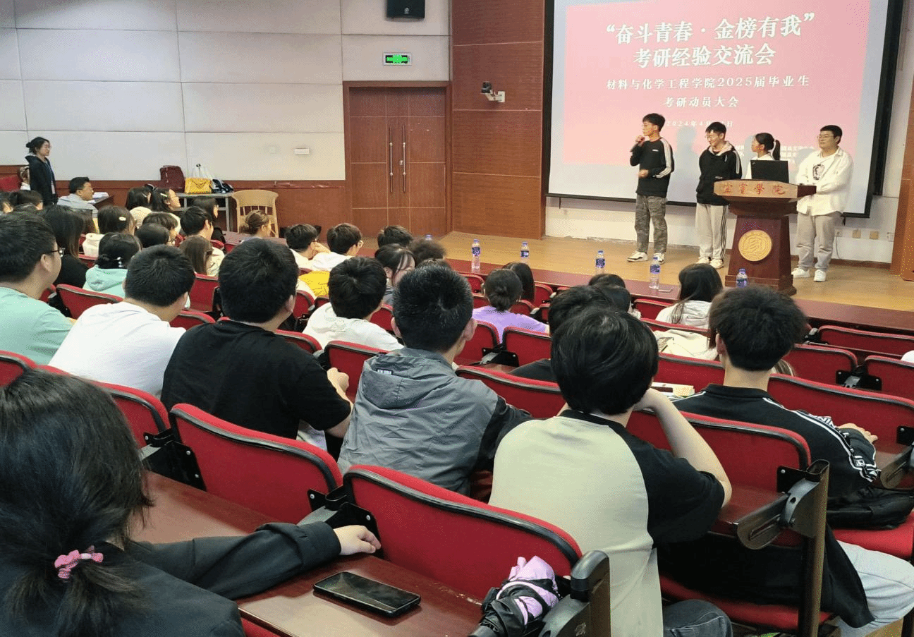 为深入贯彻落实党的教育方针,落实立德树人根本任务,进一步推进我院学风、班风建设,提高学生考研积极性,明确考研目标,增强学生考研信心。2024年4月23日,宜宾学院材料与化学工程学院在硕勋楼A101开展了“奋斗的青春”系列之“奋斗青春,金榜有我”考研经验交流会暨2025届考研动员会,党总支副书记濮江、兼职辅导员邱菊以及2021级、2022级有意向考研学生近120人参加此次会议,并邀请到2020级张卓、李卓航、汤洁、蒋佳欣四位考研成功同学到场分享考研经验。