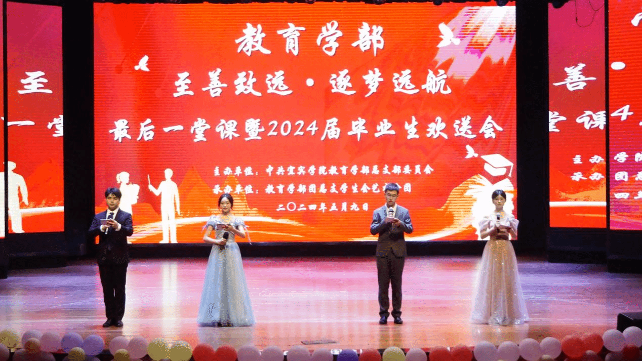 学子骊歌悠悠铭记光荣与梦想,青春力量铿锵谱写繁花与荣光。5月9日晚七点教育学部在学院A区演播大厅举办旨在强化毕业生们的民族复兴担当,同时送上真挚祝福“至善致远·逐梦远航”2024届毕业生欢送会。教育学部党总支副书记(负责工作)刘薪、党总支副书记李伟、副部长杜江及全体教师共同见证这一重要时刻。