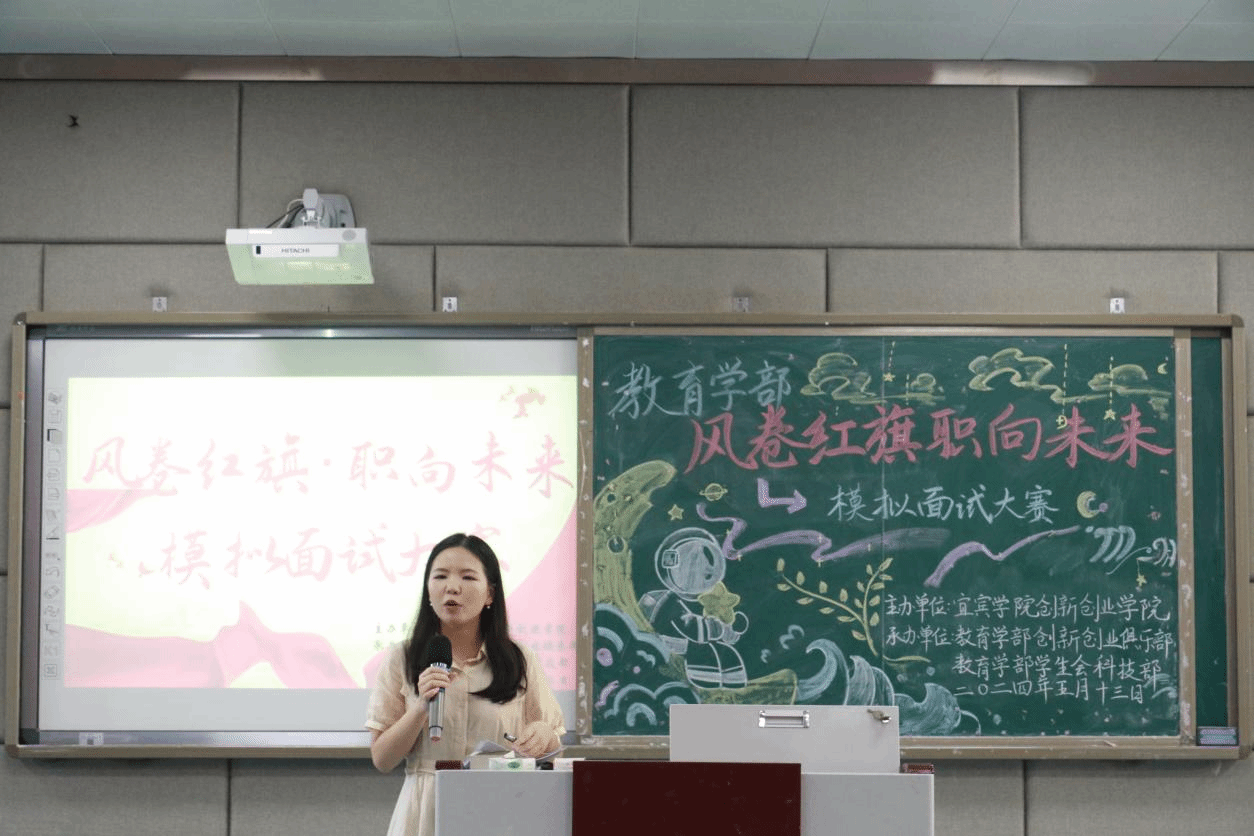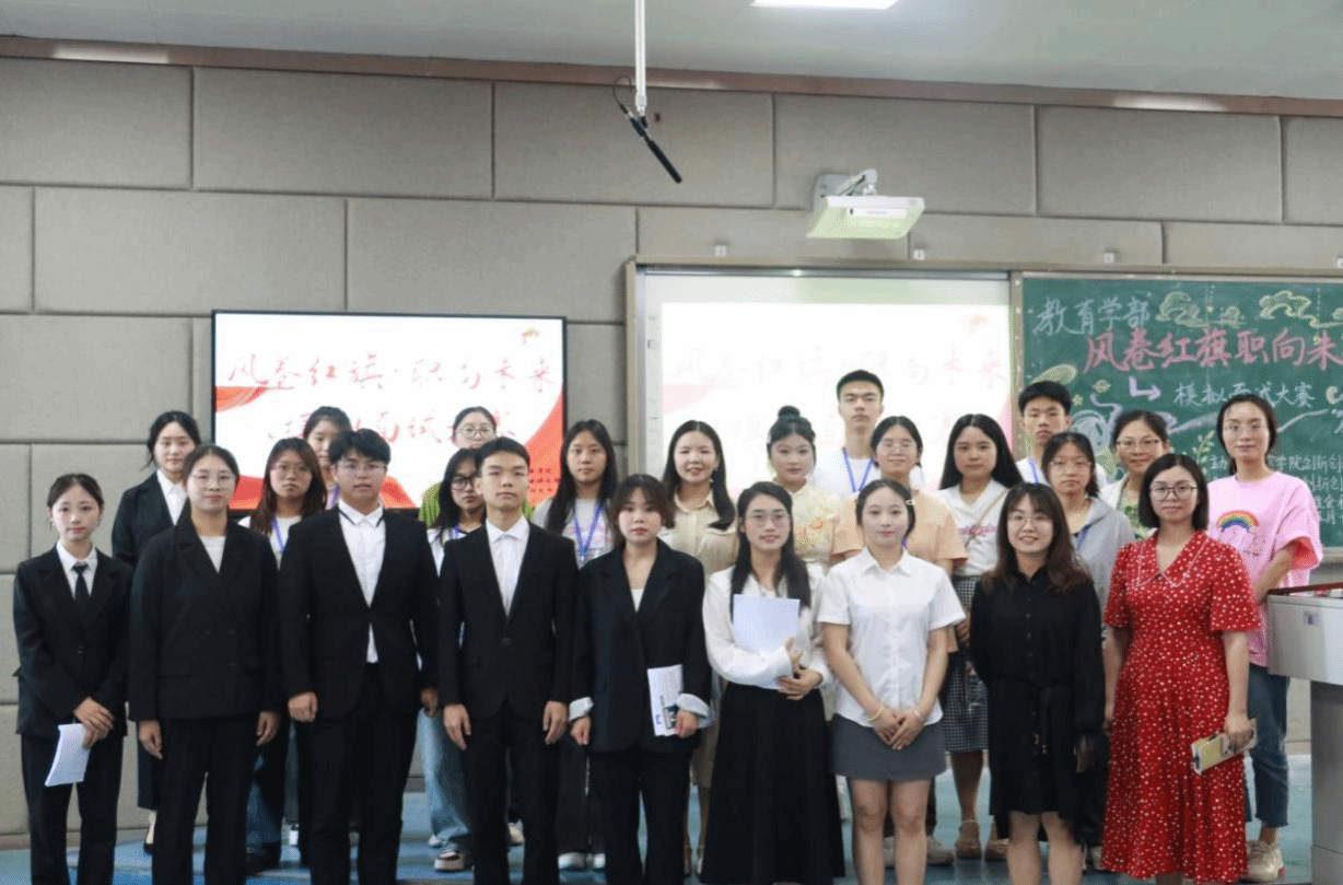 为深入贯彻落实习近平总书记来校视察重要指示精神,全面落细大学生职业规划教育,鼓励我校学子通过仿真求职面试现场,沉浸式感受面试场景,切实提升学生求职面试能力,5月13日,教育学部于博雅楼B201开展“风卷红旗·职向未来”职场模拟面试大赛活动。教育学部团总支书记、学工办主任唐辉,实验与创新中心副主任陈琴,辅导员杨云云、王勤、李佳欣、李璐,校创新创业俱乐部主席张奇兵出席本次活动。