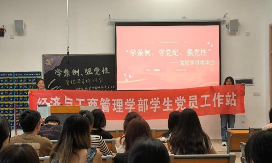 为深入贯彻习近平新时代中国特色社会主义思想和提高学生党员纪律意识,近日,经济与工商管理学院学生党员工作站于宜宾学院临港校区二期7C104召开“学条例、守党纪、强党性”党纪学习培训研讨会。
