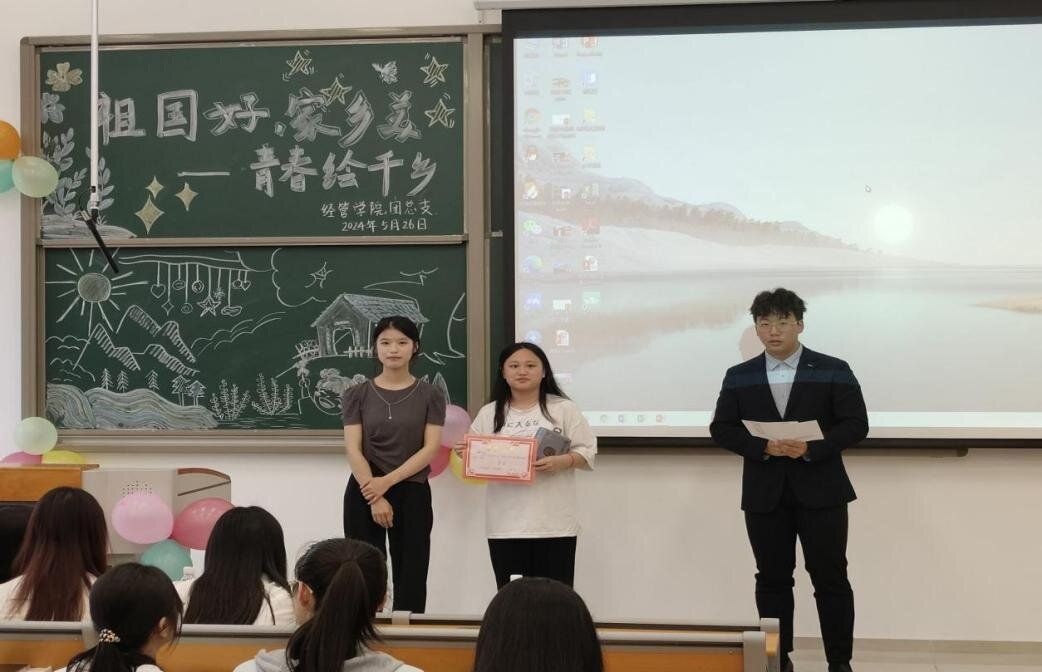 为宣传祖国美丽山河,各地风俗美景,让同学们认识到更多的美丽城市,了解当地特色,熟悉其独有文化。经管学院“祖国好,家乡美——青春绘千乡”宣讲活动决赛于5月26日在宜宾学院临港校区二期教室7c103顺利举行。本次宣讲比赛初赛以个人或者团队的名义提交宣传家乡的 PPT 或者视频,最后筛选10 支队伍(个人)进入决赛,进行现场展示,展示内容从“祖国好家乡美”主题出发,展现当代劳动美。