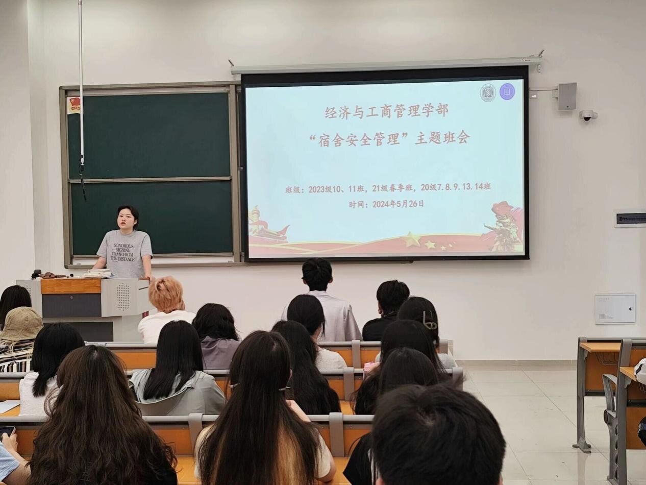 为提高同学们生活安全意识、保障同学们健康生活的环境,经济与工商管理学院于5月26日晚在全学院开展了“安全教育”主题班会。