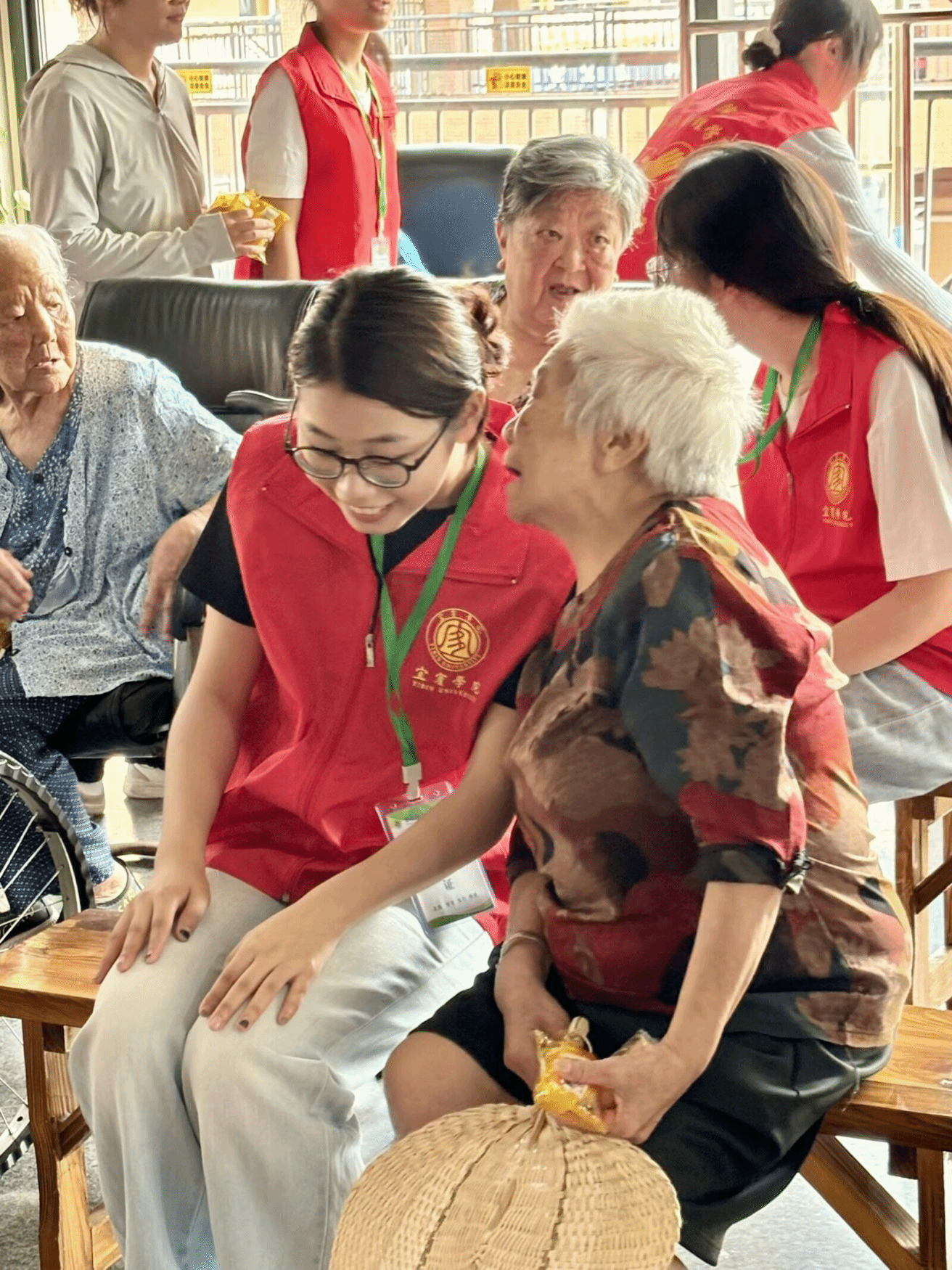 在欢快的气氛中,志愿者们与老人们积极互动,每个人的脸上都洋溢着幸福的笑容,仿佛回到了往日的青春岁月。表演结束后,在《荷塘月色》的优美旋律中,志愿者们与老人们展开了亲切的交谈。志愿者们分享了自己的学习生活,老人们则讲述了自己的养生之道、保持愉悦心情的方法以及有效的健身方式,并分享了各自的人生故事和日常生活中的点滴趣事。通过这样的交流,几代人之间的距离进一步缩短,让每一位老人心中都种下了希望的种子。