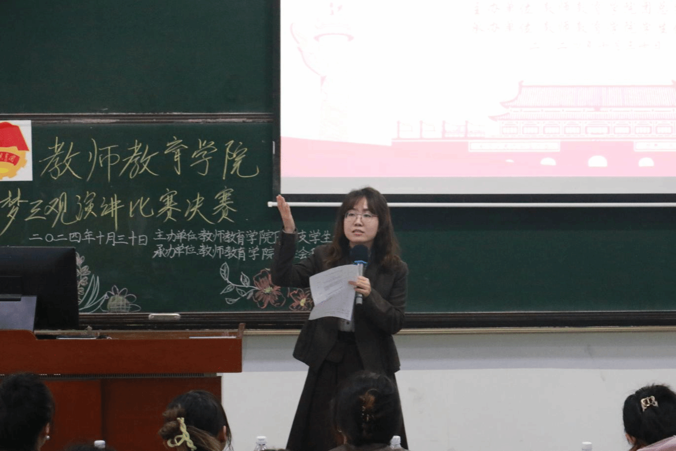 为积极响应培养国家新时代师范生的号召,深入推动师范生基本技能与素质的提升,树立崇高的教育理想,展现当代师范生的精神风貌和理想追求,10月30日,教师教育学院于硕勋楼B102开展以“一梦三观之我的教师梦”为主题的演讲比赛。教师教育学院团总支书记唐辉、辅导员王勤、杨云云、许其鑫、李璐、团总支副书记陈舒妃、学生会主席高光琴、周琴、艺术分团团长刘艺瑾出席本次活动并担任评委。