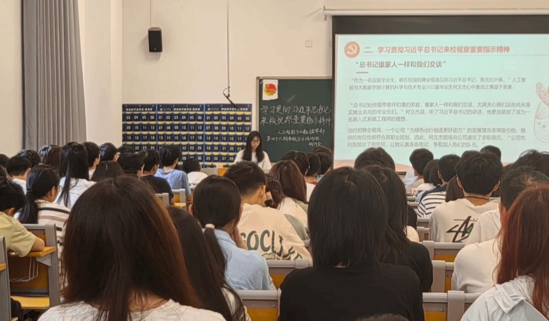 为加强对党的认识,深入领会习近平总书记来校视察重要指示精神,2024年4月24日,人工智能与大数据学部学生公寓党员工作站举办以“习近平总书记来校视察重要指示精神”为主题的交流研讨活动,工作站指导老师刘利红以及全体入党积极分子参加此次活动。